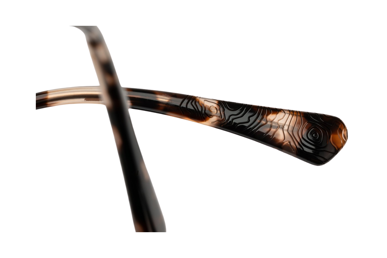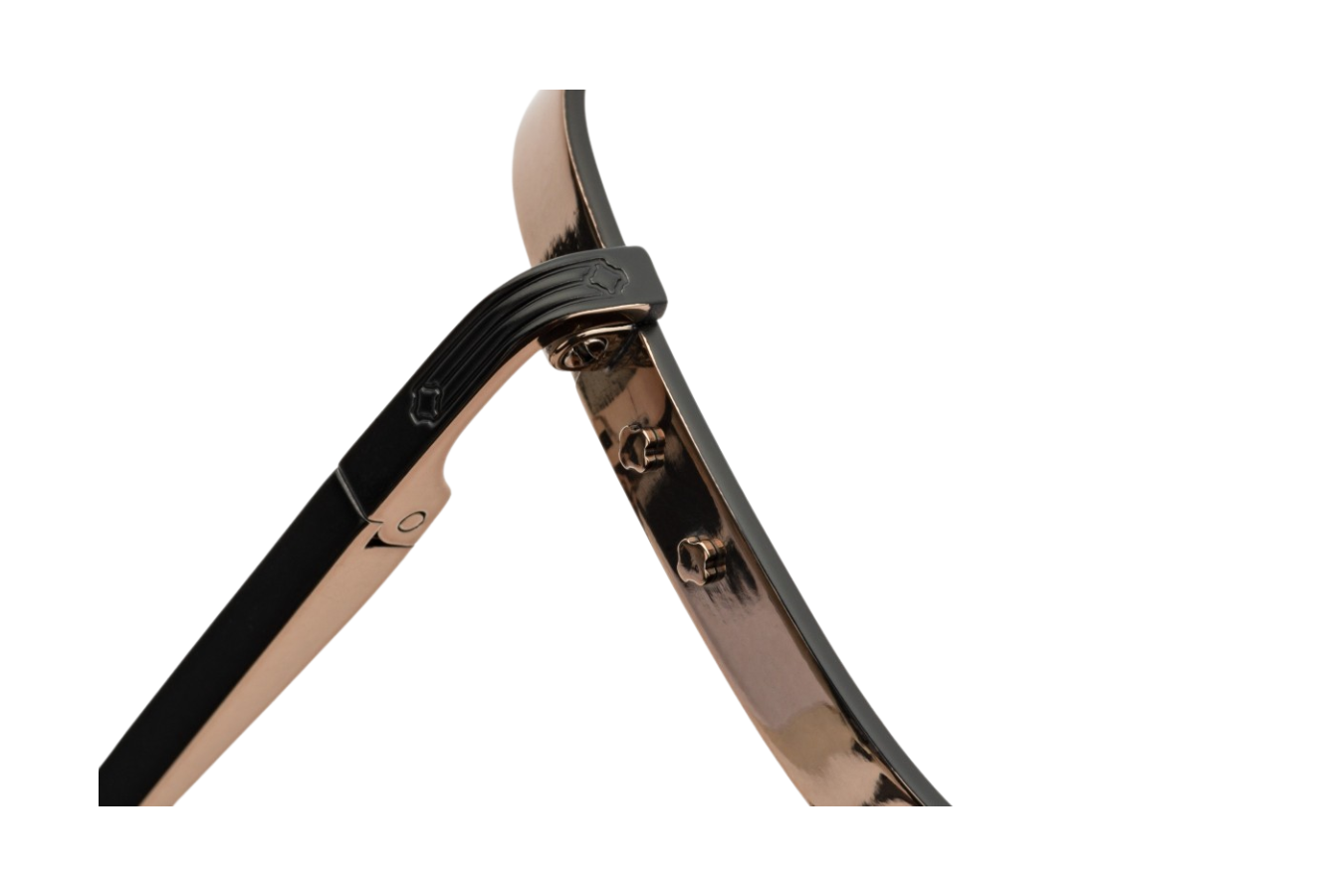 Šis tobulai subalansuotas Geisha rėmelis pasižymi stilinga, lengvai keturkampe forma su švelniai užapvalintais kampais, kuri puikiai tinka įvairioms veido formoms. Jo plona matinė juoda metalinė konstrukcija suteikia modernų, retro įkvėptą vaizdą ir platų matymo lauką. Rėmelis pasižymi aukščiausios kokybės dizainu – aukso atspalvio metalinis tiltelis ir kojelių vidinė dalis puikiai dera su prabangiomis acetato kojelėmis, pasižyminčiomis išskirtiniu juodai rudu marmuriniu Geisha raštu.