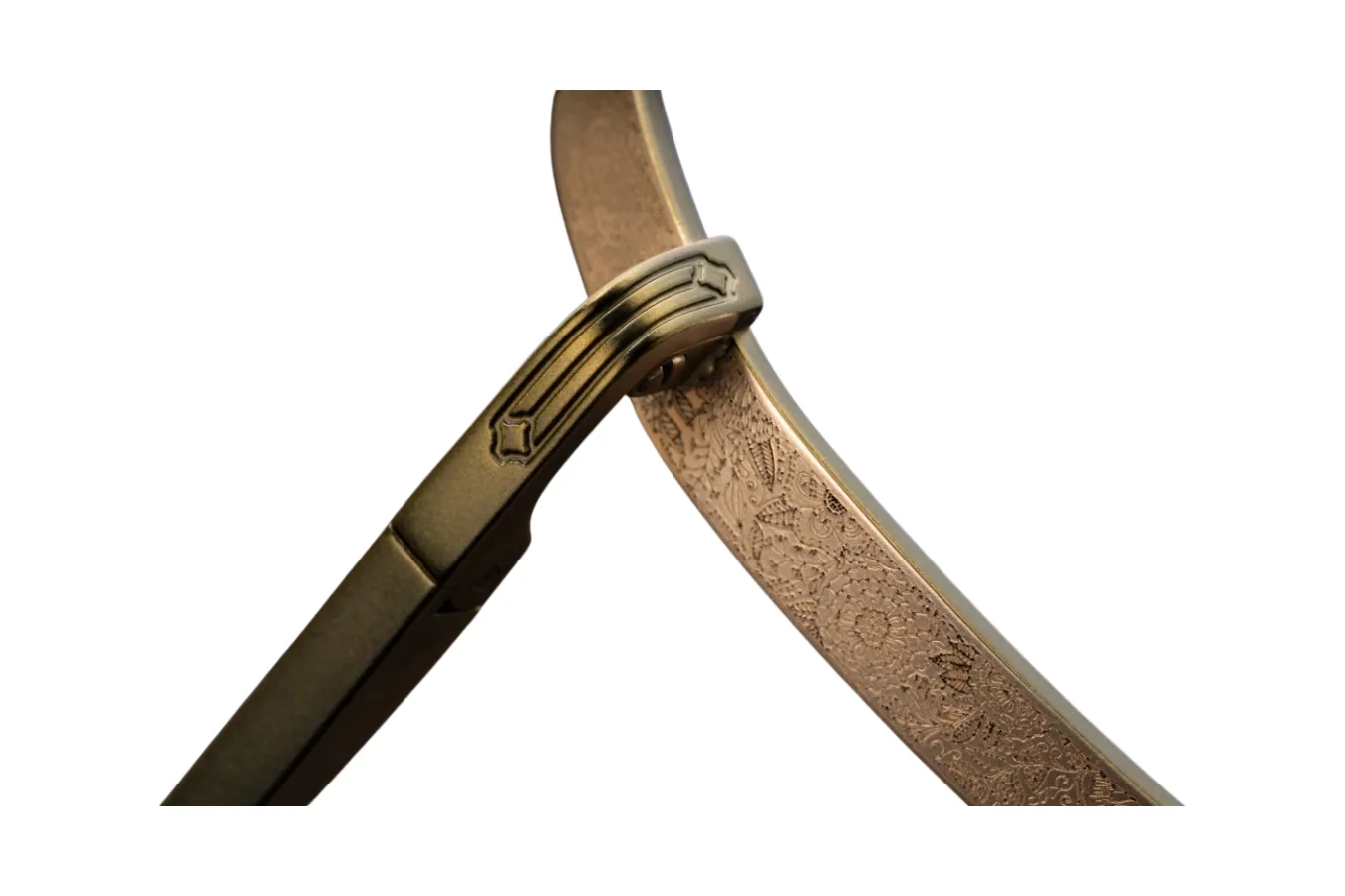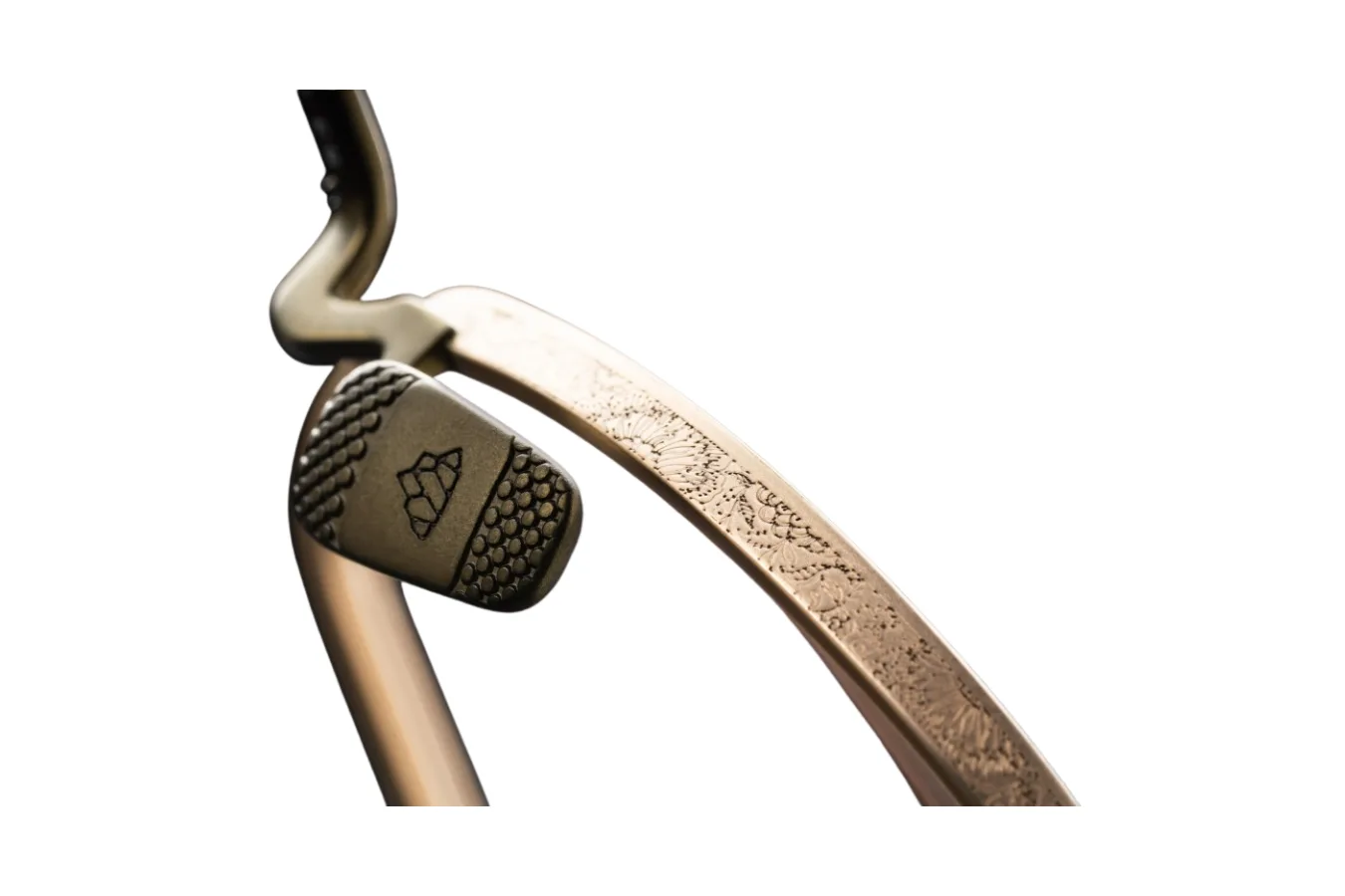 Ypatingą dėmesį patraukia meniškai sukurti kojelių galiukai, puošti subtiliu, organišku raštu, primenančiu banguojančias linijas ar švelnų lapų ornamentą. Šios detalės prideda unikalumo ir asmenybės kiekvienam žvilgsniui. Rafinuotas dvigubas tiltelis sustiprina rėmelio architektūrinį patrauklumą, suteikdamas papildomą elegancijos sluoksnį ir nepakenkdamas jo švelniam įvaizdžiui.