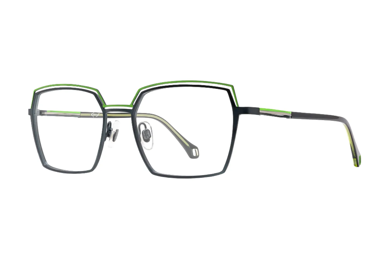 Išskirtiniai KKV630 rėmeliai pasižymi kampuota, kvadratine forma, sukuriančia ryškų, šiuolaikišką profilį. Dviejų atspalvių dizainas – matinis juodas rėmelis su ryškia viršutine dalimi – sukuria akį traukiantį kontrastą. Šis drąsus spalvinis akcentas iškart patraukia dėmesį ir pabrėžia jūsų individualumą.