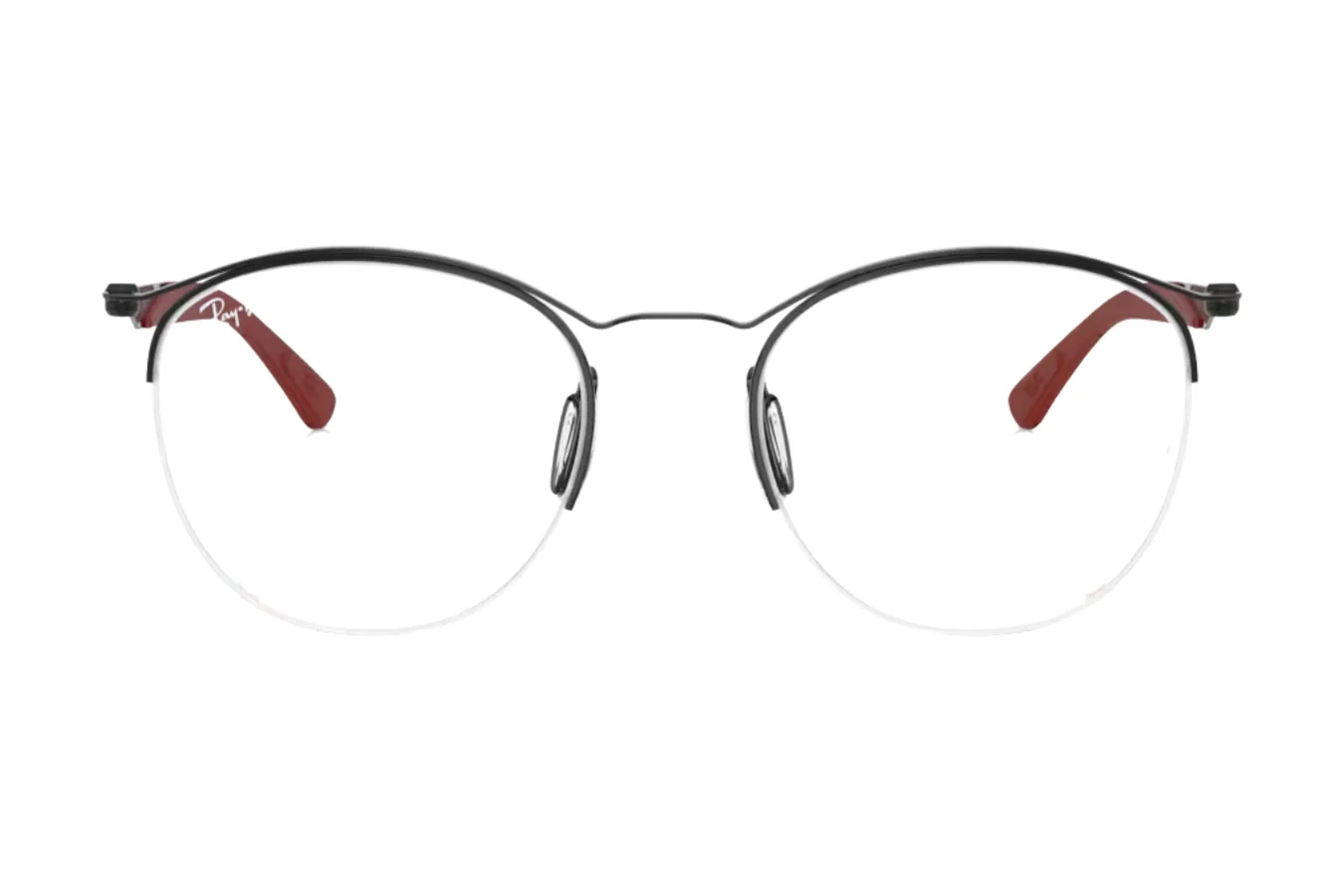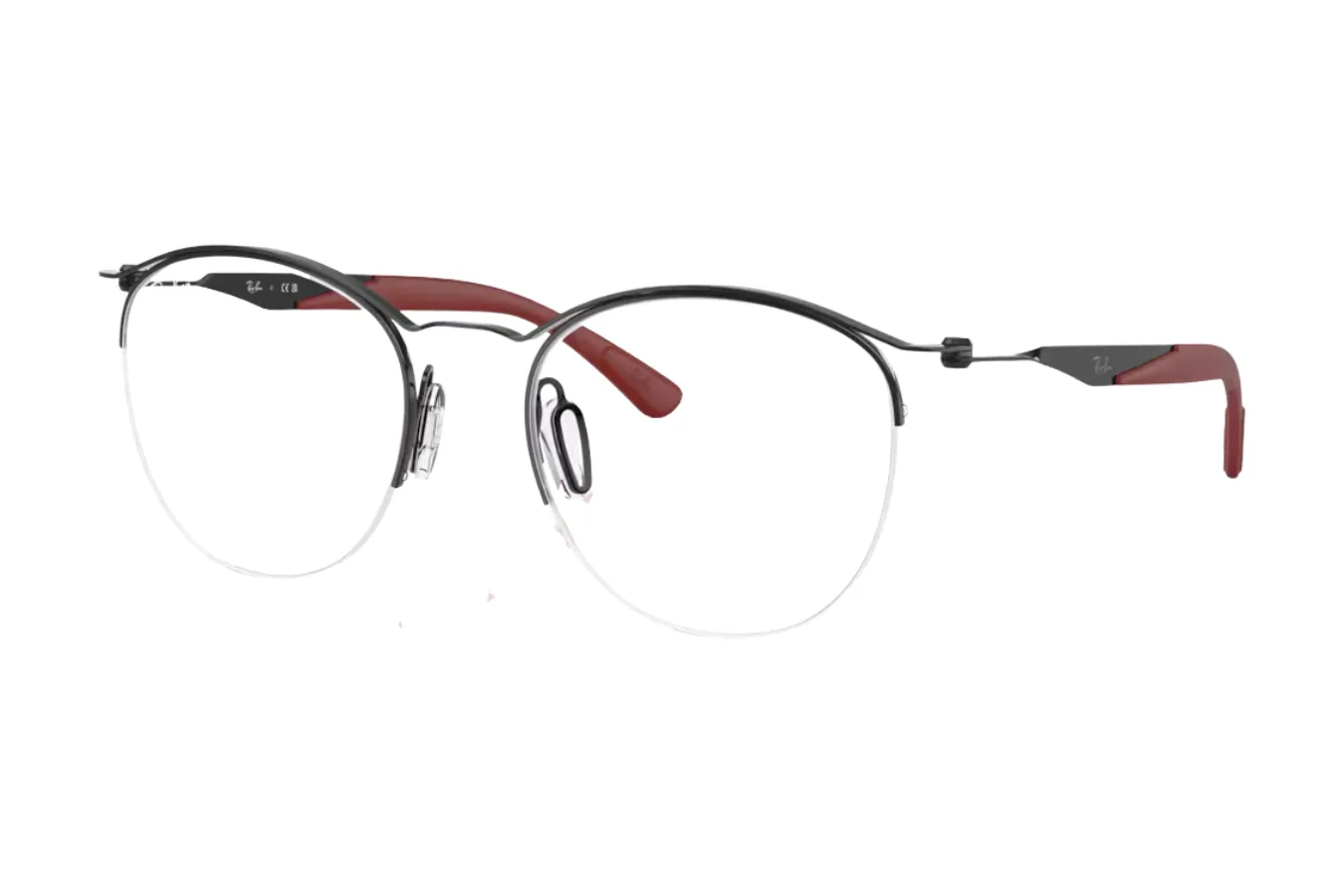 Rėmelio kojelės pasižymi išskirtiniu dviejų tonų dizainu – nuo juodo metalo ties lankstais iki tamsiai raudonos ar burgundiškos spalvos kojelių galiukų. Ši subtili spalvų kombinacija suteikia asmeniškumo ir rafinuotumo jūsų išvaizdai. Akiniai turi reguliuojamas, permatomos siliciono nosies pagalvėles, kurios užtikrina patogų ir saugų prilaikymą visą dieną.