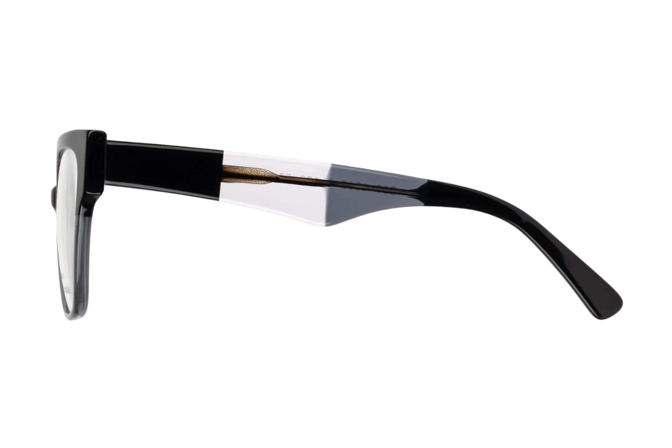 BIO 1062 rėmeliai pagaminti iš aukštos kokybės acetato, kuris užtikrina ilgaamžiškumą ir komfortą dėvint. Lengva, tačiau tvirta medžiaga leidžia akiniams išlaikyti savo formą ir ryškią apdailą ilgą laiką. Plačios, nuožulnios kojelės ne tik prisideda prie drąsios estetikos, bet ir užtikrina patogų, saugų akinių laikymąsi, tolygiai paskirstydamos svorį.
