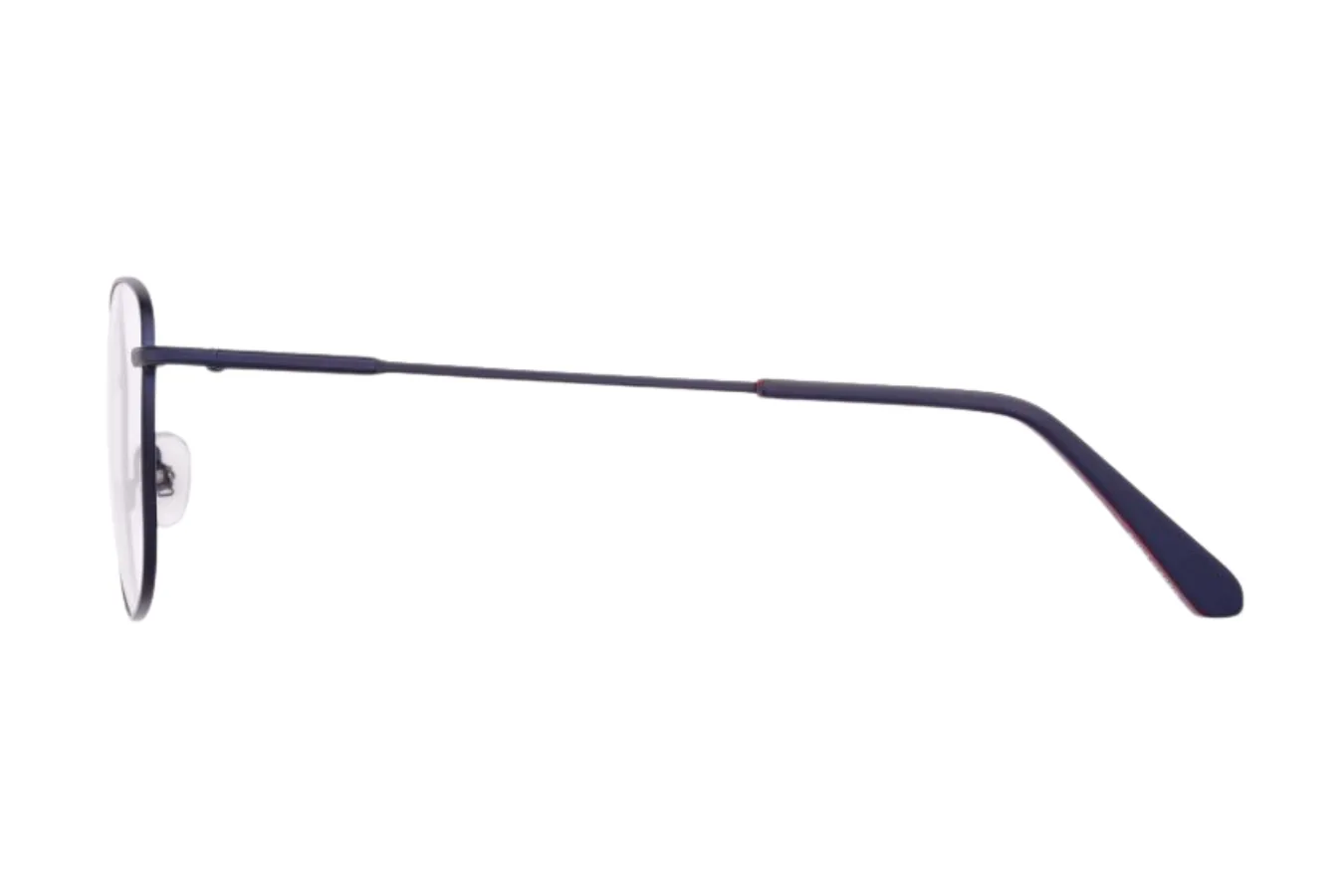 Šie elegantiškai minimalistiniai akiniai su apvaliu lęšių dizainu atspindi šiuolaikinį požiūrį į klasikinį stilių. Pagaminti iš aukštos kokybės lengvo metalo tamsiai mėlynu matiniu paviršiumi, jie užtikrina išskirtinį patogumą ir ilgaamžiškumą. Ploni rėmeliai ir elegantiškas dvigubas tiltelis sukuria rafinuotą, intelektualų įvaizdį.