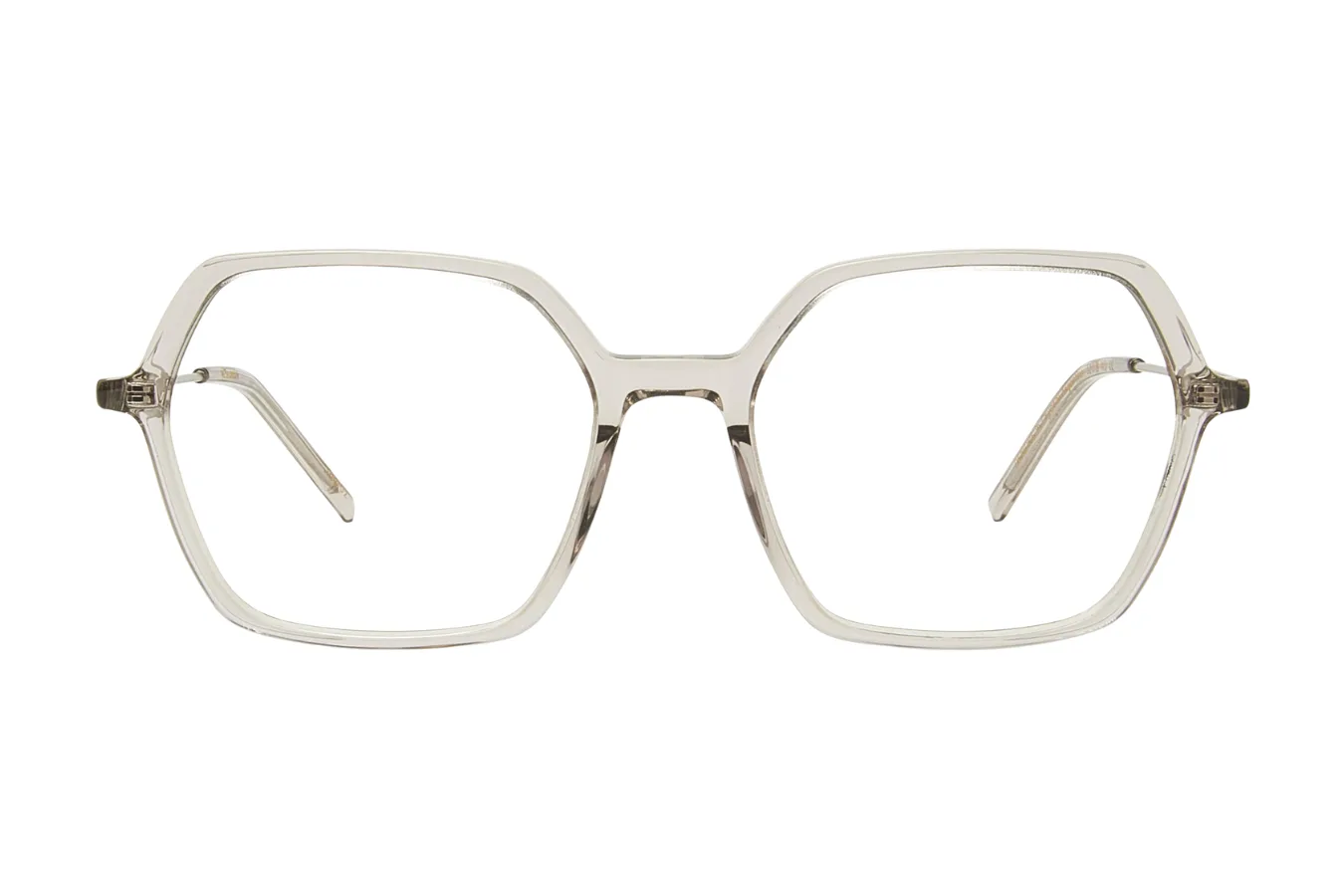 Išskirtinės geometrinės formos rėmelis iškart patraukia dėmesį. Aptakūs kampai ir unikalūs kontūrai kuria subtilų, tačiau išraiškingą stilių. Permatomas rožinis atspalvis suteikia lengvumo įspūdį ir atrodo beveik neapčiuopiamai, tačiau vis tiek sukuria stilingą akcentą.