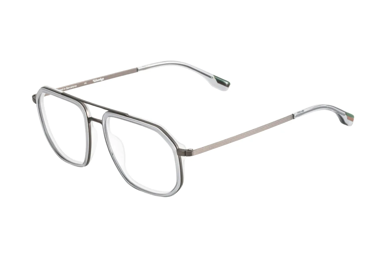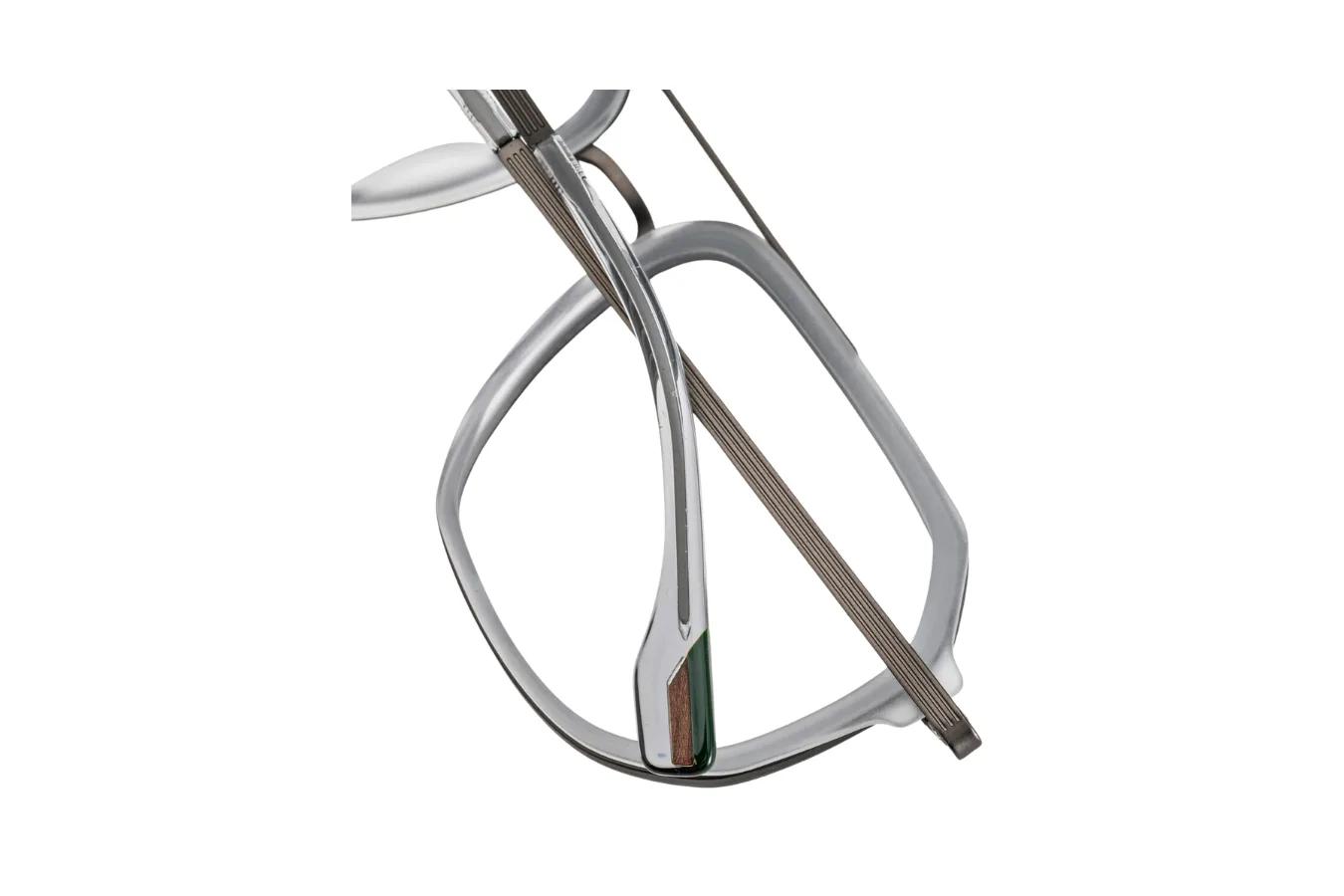 Šie išskirtiniai korekciniai akiniai suderina klasikinį aviatoriaus stilių su šiuolaikiniais dizaino elementais. Didelio dydžio, keturkampio formos aviatoriaus stiliaus rėmeliai su švelniai užapvalintais kampais sukuria modernią ir patrauklią išvaizdą. Dvigubas tiltelis suteikia architektūrinio žavesio ir vintažinio charakterio, o tamsaus rašto acetato priekinė dalis su šviesesniais rusvais atspalviais tinka įvairioms aprangos kombinacijoms.