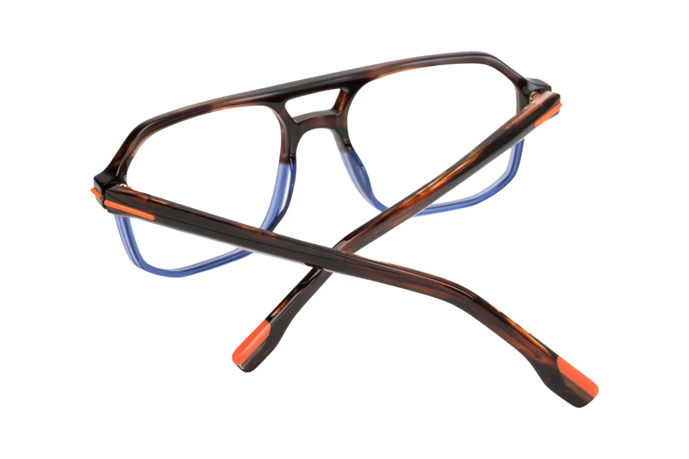 Šie išskirtiniai akinių rėmeliai pasižymi unikaliu dviejų tonų dizainu, kuris suderina klasikinį vėžlio kiauto raštą viršutinėje dalyje su ryškiu, permatomu mėlynu atspalviu apatinėje dalyje. Elegantiškas perėjimas tarp šių dviejų kontrastingų spalvų sukuria moderną, stilingą vaizdą, kuris nelieka nepastebėtas.