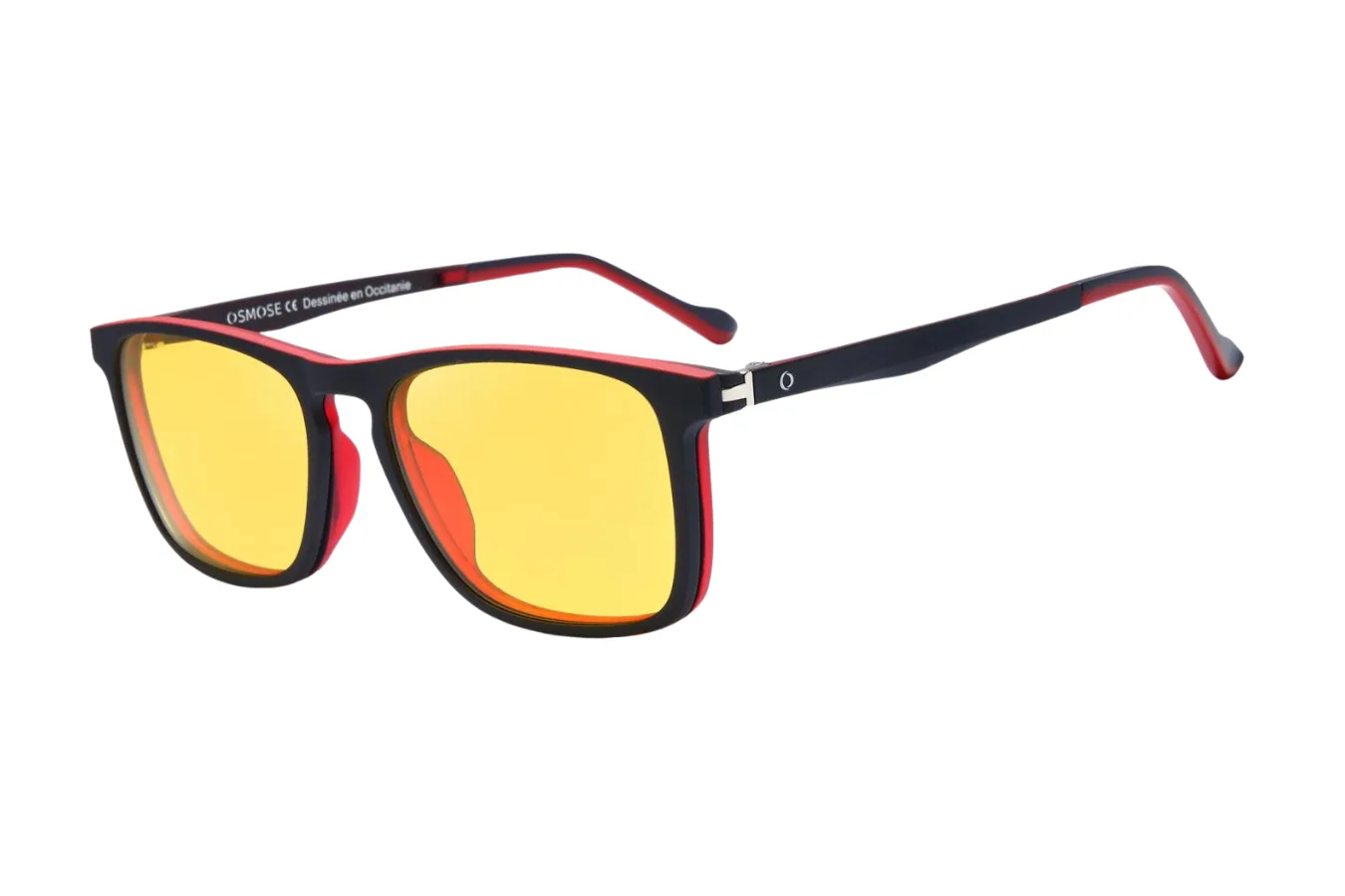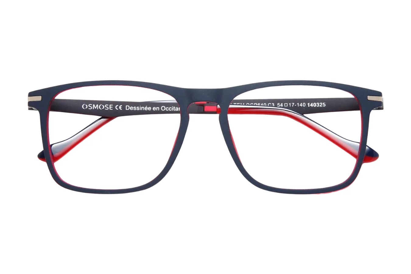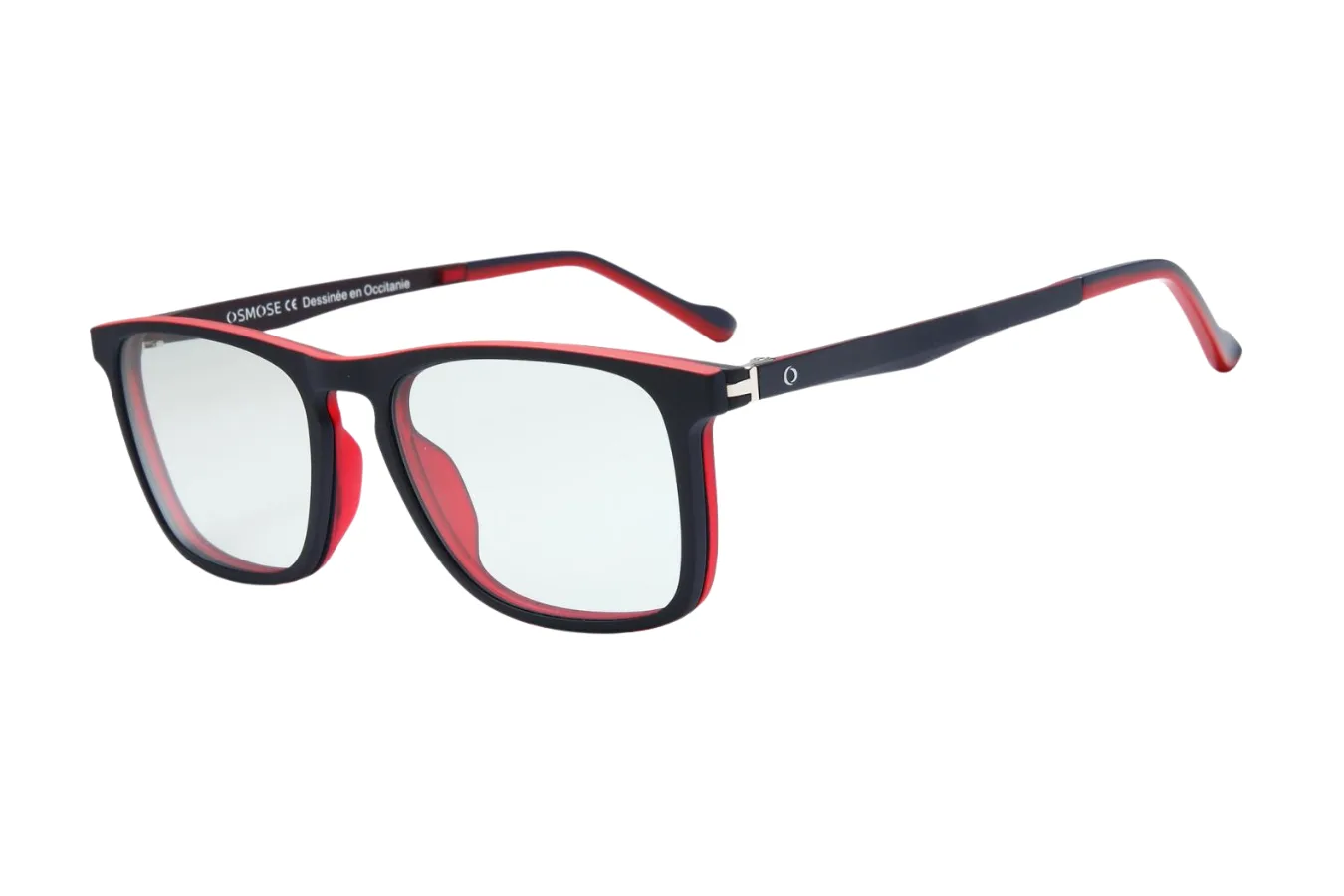 Rėmelio kojeles puošia juodos spalvos išorė su raudonais akcentais, kurie pereinančia forma tęsiasi iki pat galiukų. Sidabrinės spalvos vyriai su subiliu OSMOSE logotipu ne tik suteikia estetinį žavesį, bet ir užtikrina patvarumą bei ilgalaikį naudojimą. Kiekviena detale jaučiamas dėmesys smulkmenoms ir kokybė.
