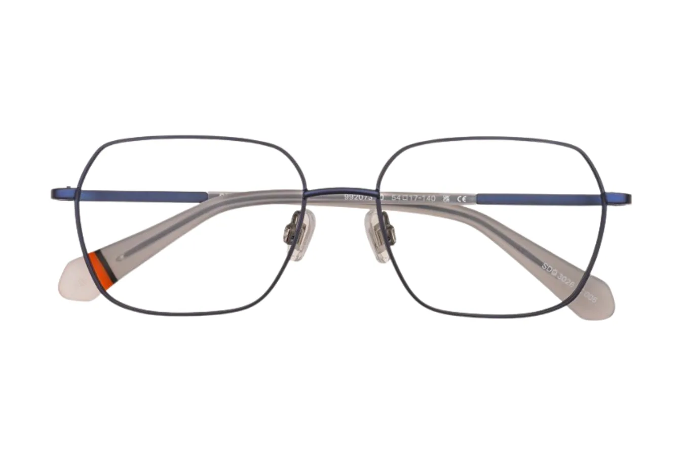 SDO 3026 – tai šiuolaikiniai korekciniai akiniai su lengvu juodu matiniu metalinio rėmelio priekiu ir drąsiomis oranžinėmis acetatinėmis kojelėmis, pasižymintys geometriniu dizainu ir reguliuojamomis nosies pagalvėlėmis, kurie tinka tiek kasdienai, tiek specialioms progoms.