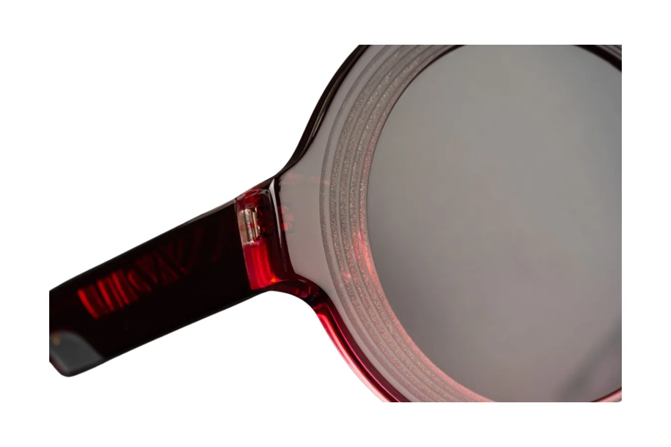 Rėmelio išorėje esantis unikalus briaunuotas raštas suteikia akinių paviršiui tekstūrą, kuri sukuria architektūrinį, skulptūrinį efektą. Švelniai pereinantys tamsiai pilki lęšiai ne tik apsaugo akis, bet ir suteikia madingą išvaizdą – tamsesni viršuje, šviesėjantys apačioje.
